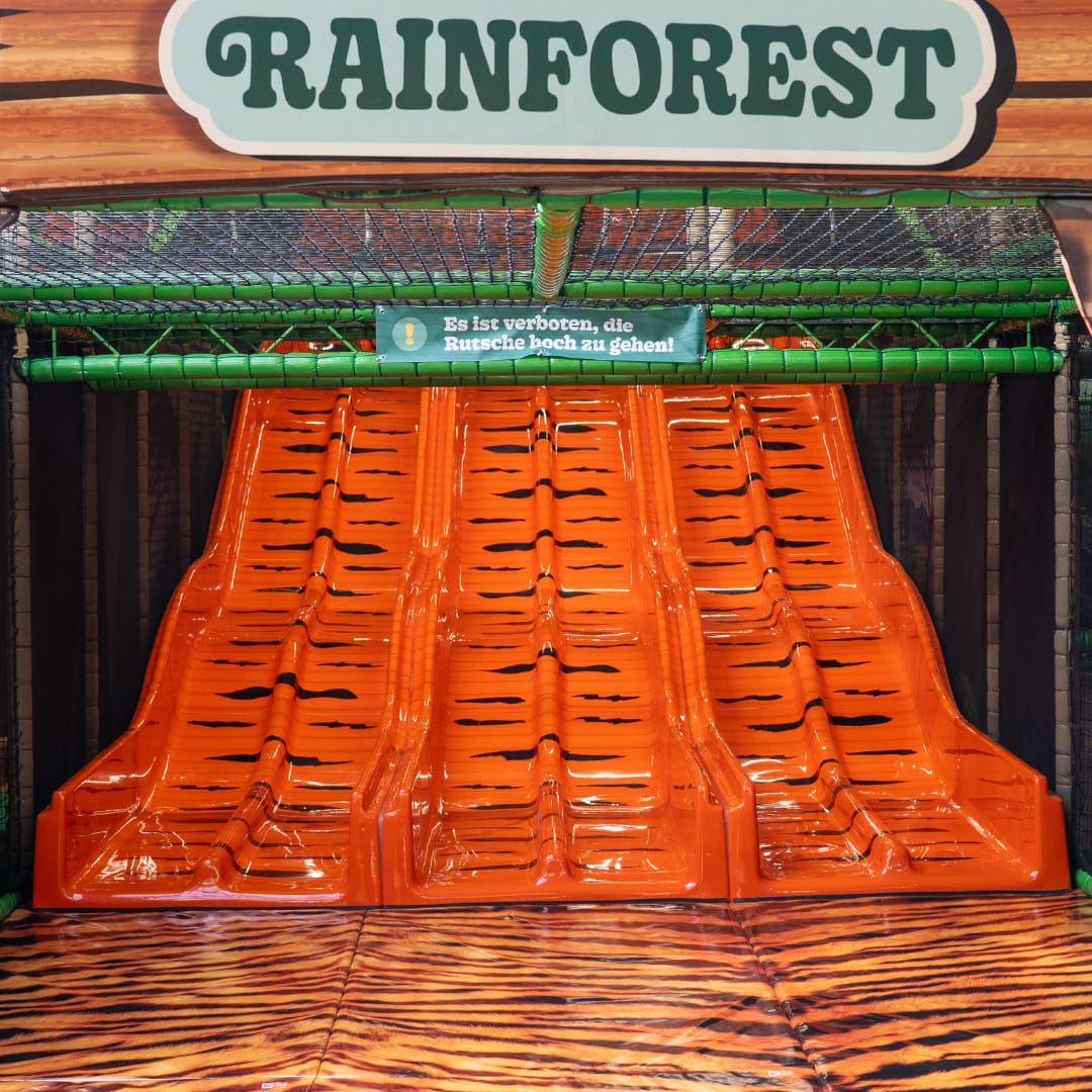 Flitz die Jungle Slide runter – eine kurvige Abfahrt durch einen dichten Regenwald! Schnapp dir deine Freunde und Familie für ein wildes Rennen auf mehreren Rutschen nebeneinander. Egal, wer zuerst unten ist, wir versprechen dir, dass dieses Abenteuer dir Schmetterlinge im Bauch bescheren wird!