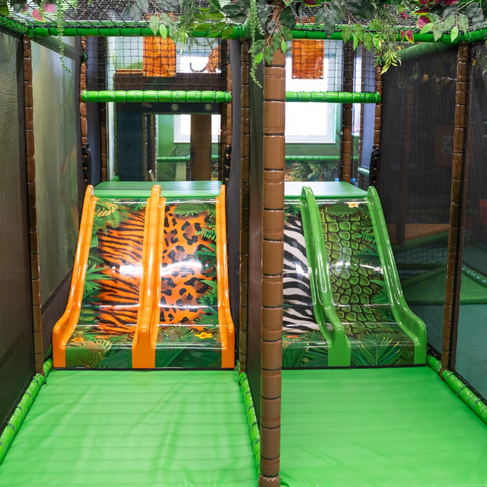 Auf die Plätze, fertig, rutschen! Auf der Mini Jungle Slide können die kleinsten Abenteurer mit ihren Freunden um die Wette rutschen. Rutscht die flachen, bunten Rutschen hinunter und lacht euch bis ganz nach unten. Sicher, lustig und spannend – das perfekte erste Dschungelabenteuer, denn Rutschen macht zu zweit einfach mehr Spaß!
