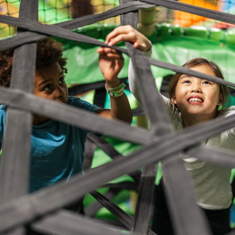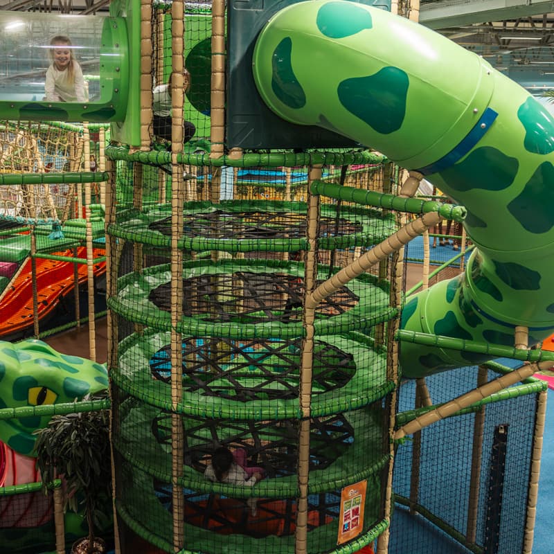 In Leos Dschungel ist alles möglich! Klettere herunter oder entspanne dich und lass dich durch das Netz sinken. Der Spider Tower ist perfekt für Kinder jeden Alters. Und keine Sorge, in Leos Dschungel gibt es nur freundliche Spinnen!