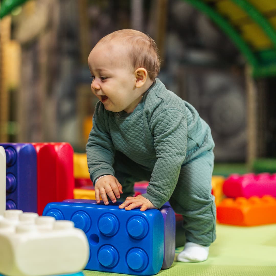 - Steh auf: Benutze unsere Blöcke oder Kletterstrukturen als Unterstützung. Wir haben perfekte Bereiche, um das Stehen und Gehen zu üben.