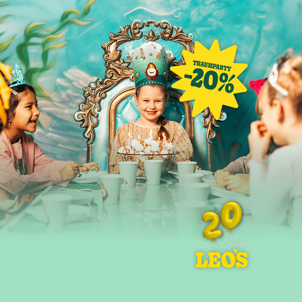 Feiere Leo’s 20. Geburtstag – jetzt Traumparty mit 20% Rabatt buchen. Angebot gültig bis 31. 01.2026!