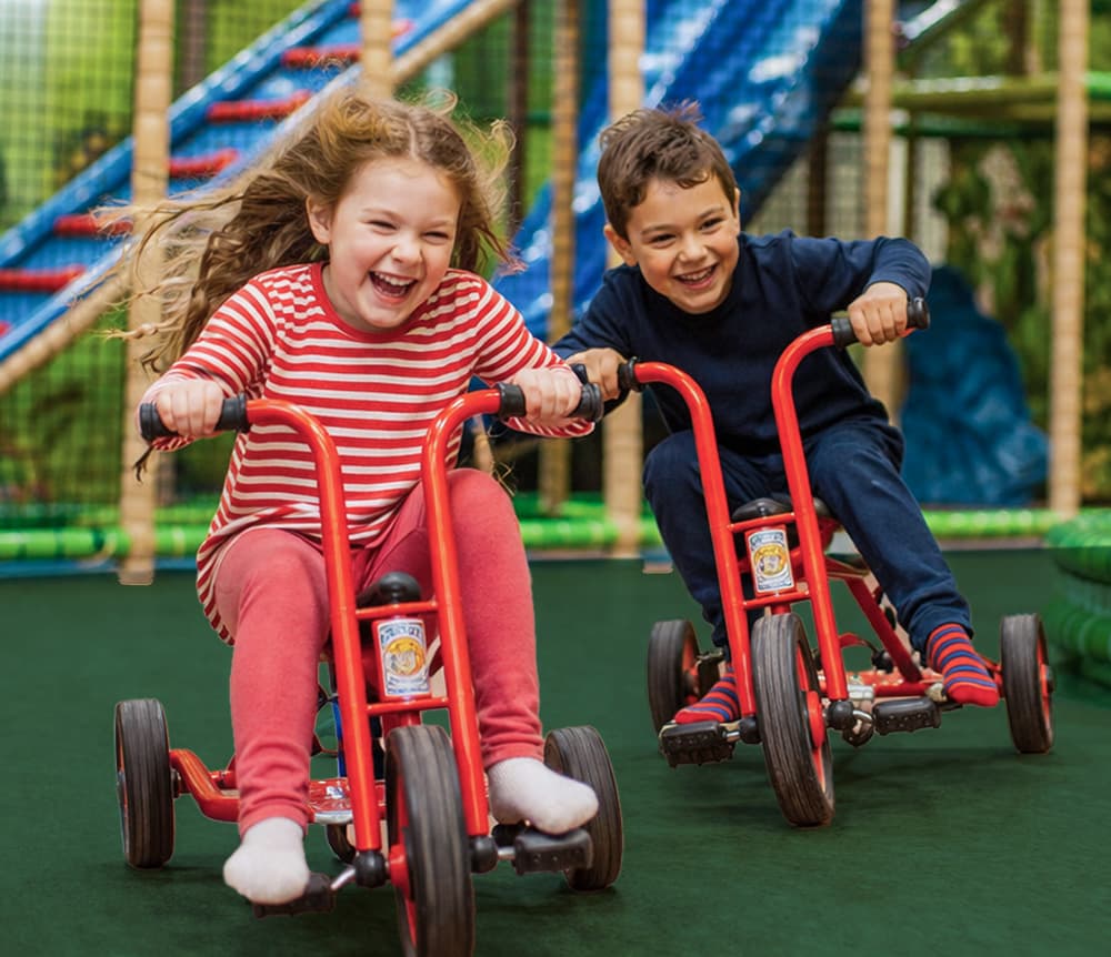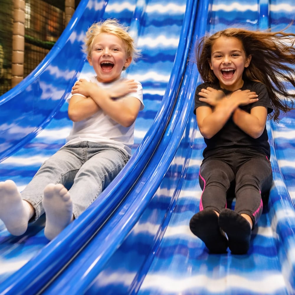 A steep ride challenges children to control their body position and trust themselves. Waterfall builds courage and confidence when kids dare to let go and let the motion carry them. A successful run feels like a big win — and makes them want to try again.