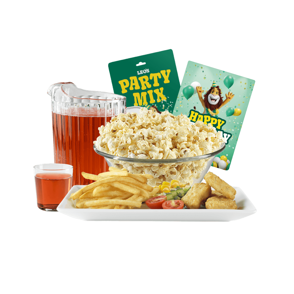 Serve Leo’s delicious golden nuggets for extra jungle energy! Kids love chicken nuggets, and they give them new energy to run, romp and explore Leo’s jungle. Here you can see what’s included in the party pack.