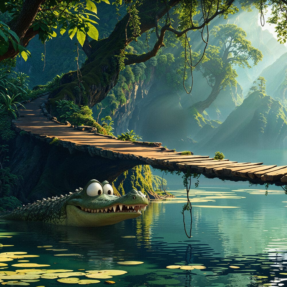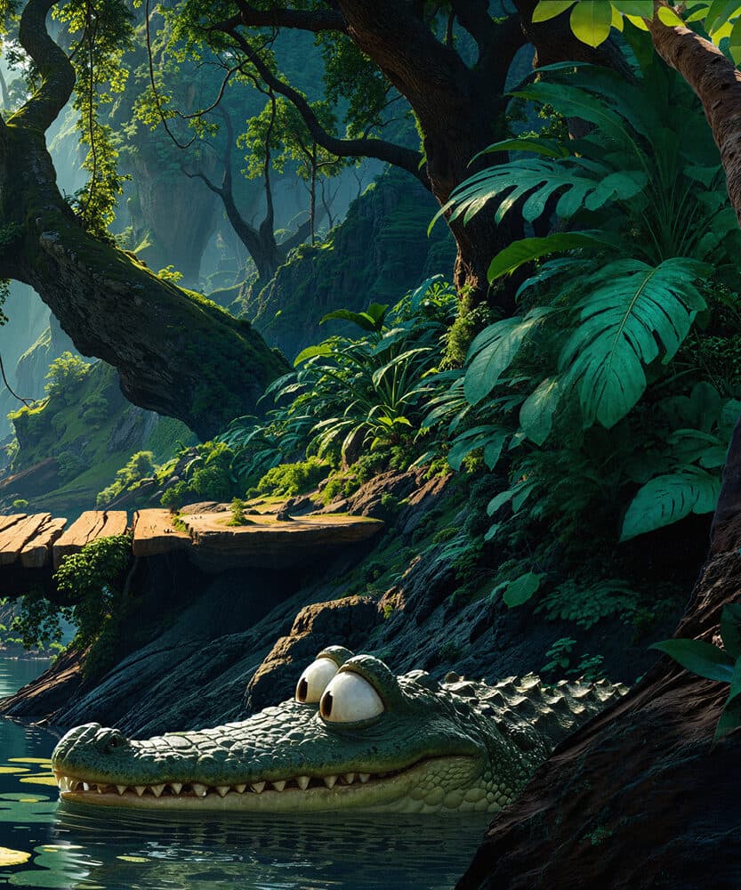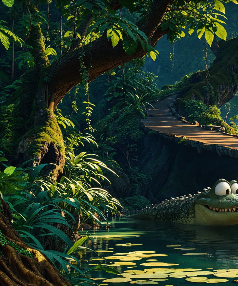 Feel the thrill as you venture into the wild world of Crocodile Swamp! Surrounded by dense, lush greenery, you cautiously make your way through the mysterious marshland. Crocodiles, snakes, and hippos lurk just out of sight – ready to unleash the next adventure!