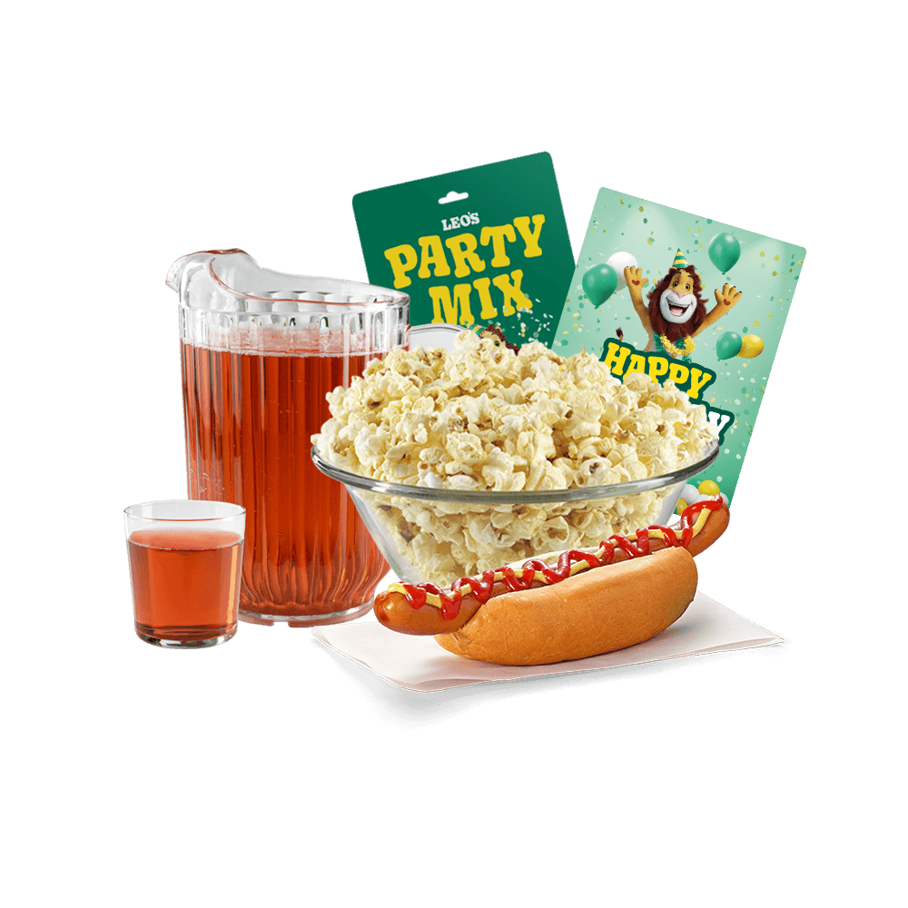 Eine spaßige und übersichtliche Party ohne den Service eines Geburtstagsbetreuers. Die Nachfüllung von Orangen-Limonade und Popcorn erhältst du auf Anfrage. Wenn du zusätzlichen Service für deine Party haben möchtest, wähle eines unserer anderen Party-Pakete.