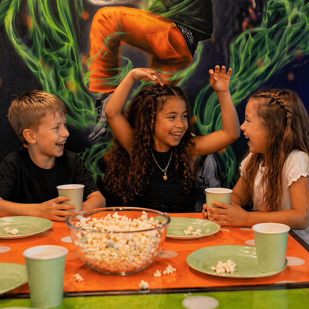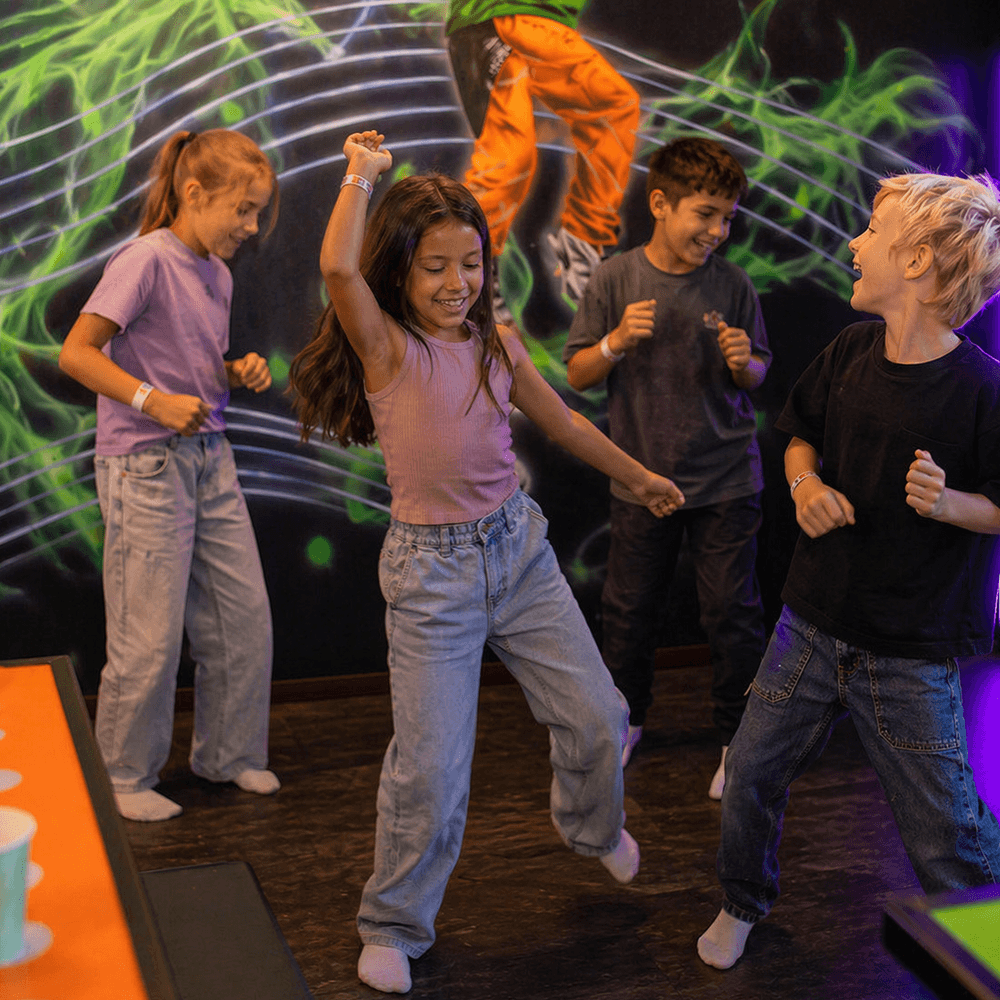Wenn du den Discoraum betrittst, leuchten bunte Farben, und Lichter bewegen sich über Wände und Decke. Der Tisch ist gedeckt, und das Discothema ist überall spürbar – die Kinder sind sofort mitten in der Partystimmung. Bei Leo’s gibt es verschiedene Disco-Räume wie Disco Pop, Disco DJ und Disco Dance. Alles ist vorbereitet – du musst nichts planen, nichts dekorieren. Die Stimmung ist von Anfang an da, sodass dein Kind direkt loslegen und in den Rhythmus der Party eintauchen kann.