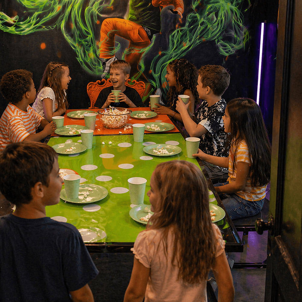 Bei Leo’s Abenteuerpark findest du Geburtstagsthemen für jeden Stil und für alle kleinen Partygäste. Egal, welche Stimmung sich das Geburtstagskind wünscht – es gibt jede Menge Auswahl. Die Themenräume variieren je nach Park. Das Aussehen des Partyraums kann zwischen den Abenteuerparks variieren. Um zu sehen, wie es in deinem nächstgelegenen Abenteuerpark aussieht, besuche das Geburtstagsbuchungssystem.